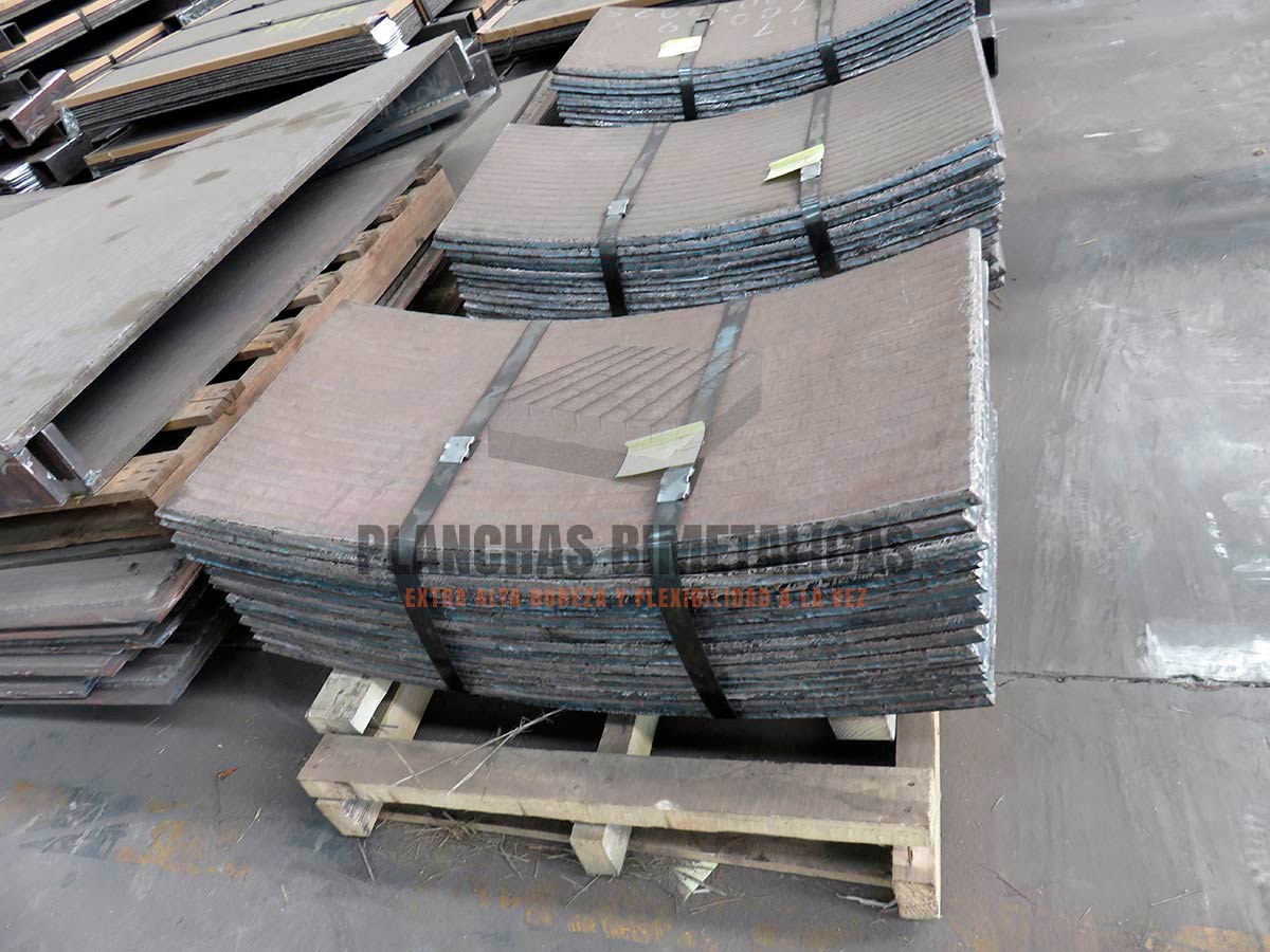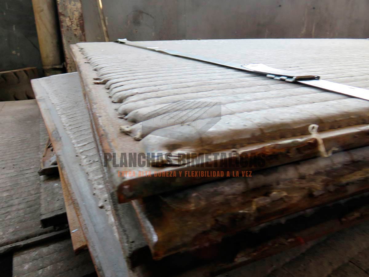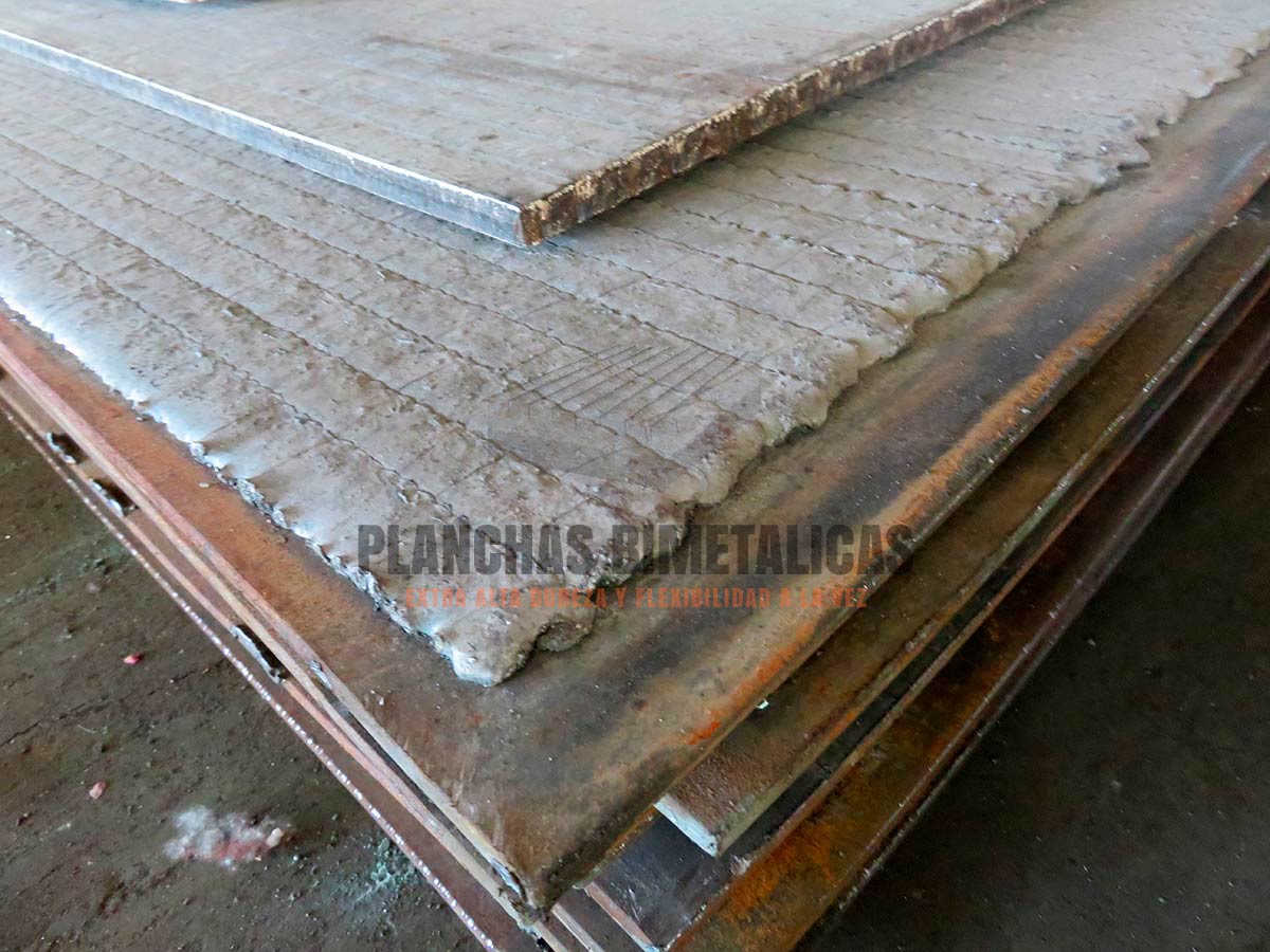 Composición química: las planchas son fabricadas con una o mas capa de soldadura anti-desgaste sobre una placa base de acero en bajo o medio carbón. la aleación contiene grandes cantidades de partículas duras de carburo de cromo.